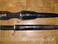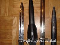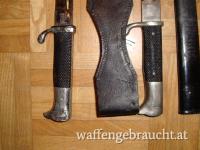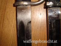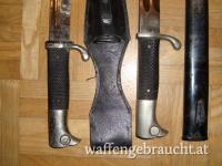 2 Ausgehbajonette K98. 1x lang, 1x kurz mit Lederkoppelschuh. Beide selber Hersteller. Beschreibung und Zustand entnehmen Sie bitte den beigefügten Bilder. Werden nur gemeinsam abgegeben. Der Privatverkauf erfolgt unter Ausschluss jeglicher Gewährleistung. Bei Versandwunsch, kommen 8.- Euro Versandkosten innerhalb Österreich dazu. (Postversand mit Sendungsverfolgung)