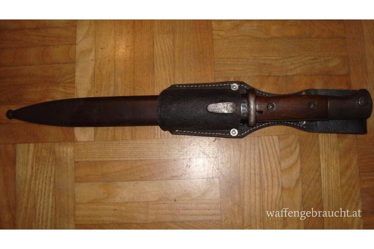 Bajonett K98 mit Holzgriffschalen und Scheide. Nicht nummerngleich. Hersteller Bajonett 42 cof, Scheide E u F Hörster 1939. Beschreibung und Zustand entnehmen Sie bitte den beigefügten 10 Bilder. Der Privatverkauf erfolgt unter Ausschluss jeglicher Gewährleistung. Bei Versandwunsch, kommen 7.- Euro Versandkosten innerhalb Österreich dazu. (Postversand mit Sendungsverfolgung)