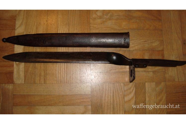 Ersatzbajonett mit Scheide.(Vermutlich KuK M95) Beschreibung und Zustand entnehmen Sie bitte den beigefügten 10 Bilder. Der Privatverkauf erfolgt unter Ausschluss jeglicher Gewährleistung. Bei Versandwunsch, kommen 7.- Euro Versandkosten innerhalb Österreich dazu. (Postversand mit Sendungsverfolgung)