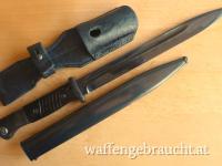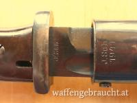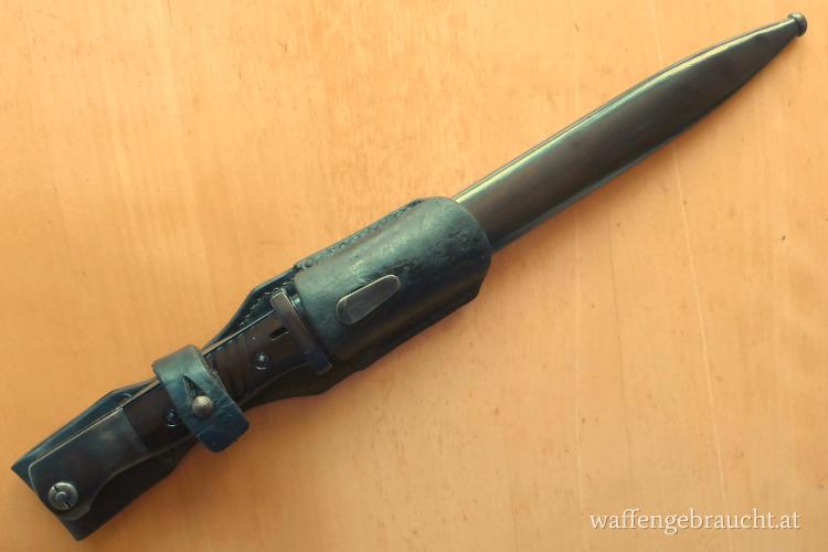 unverbasteltes schönes deutsches K98er Bajonett aus dem 2.WK mit Scheide und originalem Koppelschuh mit RBN Nummer in aussergewöhnlich gutem Zustand; unbeschliffen, nummerngleich & alle Teile mit WaA-Abnahmestempel, vom seltenen Hersteller: J.Sch. = Jetter & Scheerer, Tuttlingen,1941, mit der Nummer 508 (der nur bis 1941 Bajonette produziert hat!) aus meiner Sammlung abzugeben. Die Bilder sind Bestandteil der Beschreibung! Sämtliche angebotenen Artikel befinden sich in meinem Privatbesitz und ich verfolge keinerlei gewerblichen Zwecke. Da dies ein Privatverkauf ist, erfolgt der Verkauf auf Grund der EU-Gesetzesbestimmung unter Ausschluss jeglicher Gewährleistung, Garantie und Rücknahme! Porto im Inland € 7.- (EU auf Anfrage)