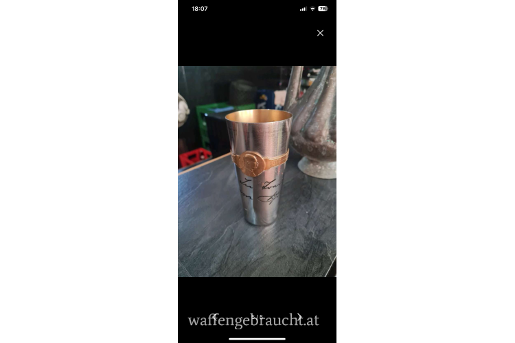 Kriegsbecher in super Zustand, Gravur: In Treue fest! Von Hindenburg. Hersteller Berndorf, innen vergoldet. Siehe Bilder