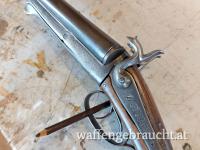 Sammlungsauflösung- Zündstift-Doppelflinte Lefaucheux, in gepflegtem Sammlerzustand, Schlossfunktionen OK, unbeschossen, schöner Nussbaumschaft, Garnituren graviert, siehe Fotos,