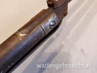 Luftgewehr, Knickspanner, antik um 1900, Marke verm. Diana oder Quakenbusch, im Fundzustand, unrestauriert, flugrostig nur gereinigt Feder intakt aber hängt nicht ein, Schaftholz gut, Lauf 8-kant. in rund übergehend, cal. 4,5, ein restaurationswürdiges Sammlerstück, Versand 25,00