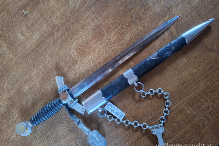 Gebe wegen Sammlungsauflösung diesen Luftw.Borddolch ab die Belederung an der Scheide müsste erneuert werden (Lagerspuren) Dolch und Beschläge in top Zustand Die Beschläge an der Scheide sind