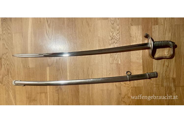 Verkaufe einen M1861, lange Ausführung 93cm mit 80cm Klinge, diese ist in der oberen Hälfte auf beiden Seiten ziseliert. Hersteller Clauberg Solingen. Wer WhatsApp hat, kann auch 2 kurze Videos von dem Säbel haben. Versand zu Lasten des Käufers möglich, persönliche Übergabe in Wien21 bevorzugt.