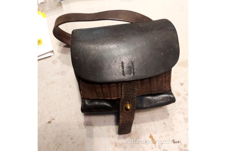 antike gepflegte Ledertasche für Munition, Alter um 1880, etwas wo man selten findet in guten Gebrauchszustand dem Alter entsprechend komplett, gepflegtes Leder, Nähte komplett,, ein tolles antikes Stück, Masse 19x17x8 cm, Versandkosten in A 15,00