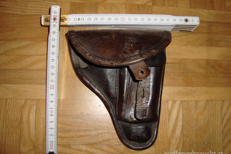 Pistolentasche aus Leder (vermutlich für kleine Offizierspistole 6,35 1. Weltkrieg) Keine Stempel ersichtlich. Beschreibung und Zustand entnehmen Sie bitte den beigefügten 7 Bilder. Der Privatverkauf erfolgt unter Ausschluss jeglicher Gewährleistung. Bei Versandwunsch kommen 7.- Euro Versandkosten innerhalb Österreich dazu. (Postversand mit Sendungsverfolgung)