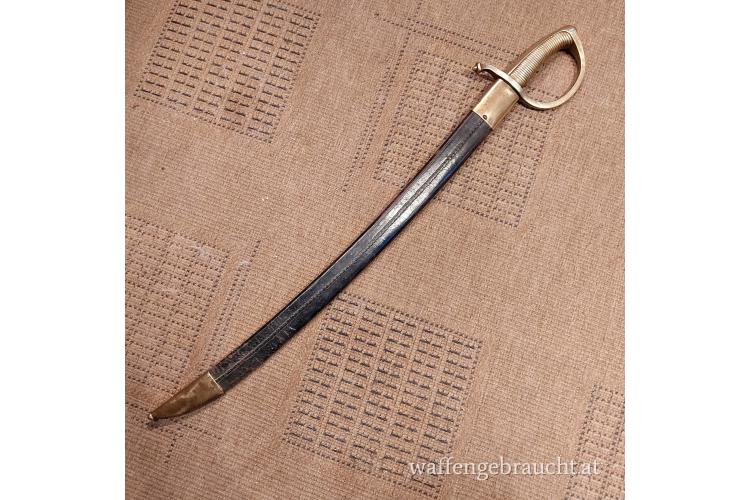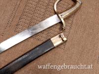 Schweizer Säbel für Infanterie 1842 zu verkaufen. Ein beeindruckendes Sammlerstück, ideal für Liebhaber historischer Waffen. Der Säbel ist ein echter Hingucker. Trotz seines Alters ist er in gutem Zustand. Lederscheide sehr gut, Scheidennaht intakt, schönes Messinggefäß, Gesamtlänge 74cm, Klingenlänge 59,5cm, Klingenrücken am Griff 7mm,