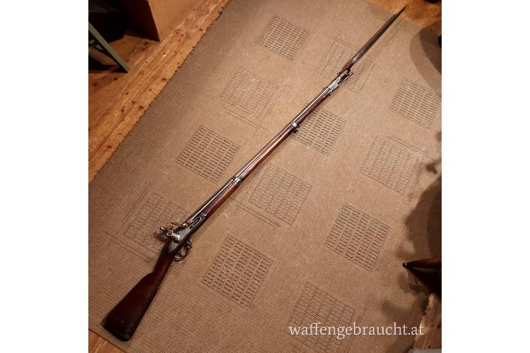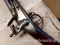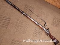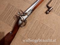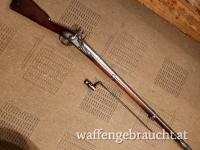 Steinschloß – Franz. Ordonanzgewehr mit Bajonett 1777, gepflegter Sammlerzustand, aus Verlassenschaft zu verkaufen, ein sehr seltenes Stück in einem hervorragenden originalen Zustand, Schloss und Federn gut und OK, verm. Neubeschuss gemarkt auf Schwanzschraube V1837, glatter Lauf dm 18mm, Länge Gewehr 140cm, mit aufgepflanztem Bajonett 187 cm, Versandkosten 20,00