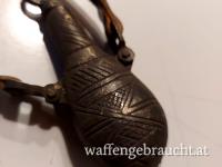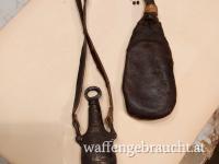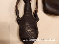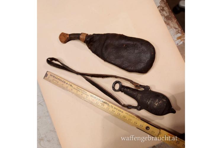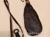 Vorderlader Zubehör antik Pulverflasche und Schrotbeutel aus Leder