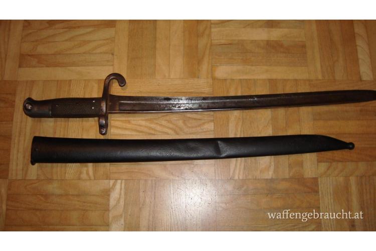 Werndl Säbelbajonett mit Scheide. Leider 2 Dellen in der Scheide und Rostnarbig. Die restliche Beschreibung und den Zustand entnehmen Sie bitte den beigefügten 10 Bilder. Der Privatverkauf erfolgt unter Ausschluss jeglicher Gewährleistung. Bei Versandwunsch, kommen 7.- Euro Versandkosten innerhalb Österreich dazu. (Postversand mit Sendungsverfolgung)