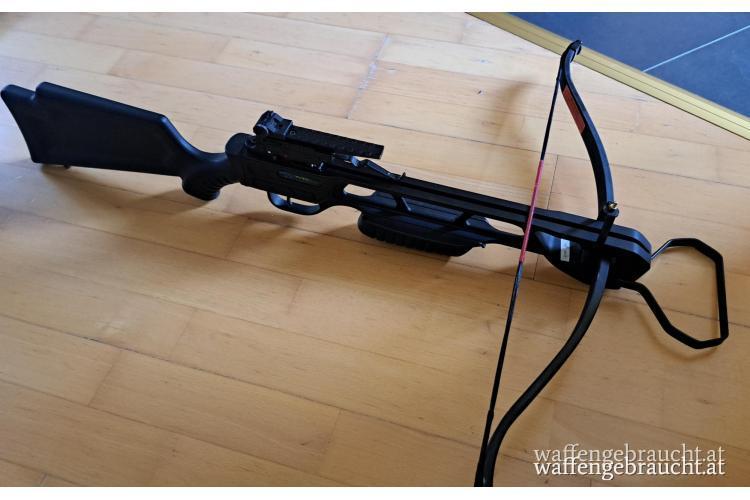 Da ich keine Zeit gefunden habe, verkaufe ich diese Armbrust unbenutzt. Als Zubehör ist dabei ein hochwertiger Tragegurt aus Nylon, Kunststoff Köcher, 4 Pfeile (16") , Fußbügel (Metallfußschlaufe), Montagehilfe.