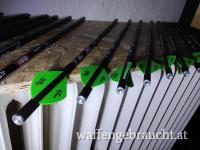 Insgesamt 18 Pfeile. 8 mit weissen Federn, 10 mit grünen.