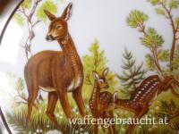 2 Wandteller, Zinn mit Porzellan, Rehe / Fasane