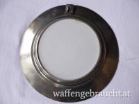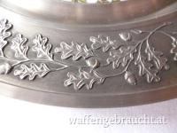 2 Wandteller, Zinn mit Porzellan, Rehe / Fasane