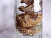 Alter Glaskrug mit Zinndeckel, handbemalt - Steinadler mit Feldhase, Gesamthöhe 23 cm, geschliffener Eichstrich "0'5 L", sehr guter Zustand, VB 110,--
