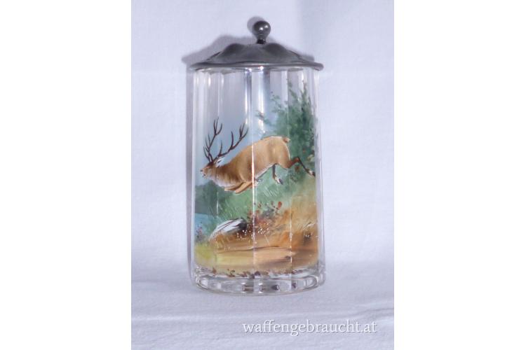 Bierkrug mit Zinndeckel, Rothirschmotiv, 15.5 cm