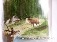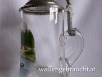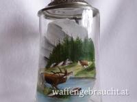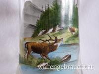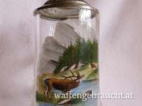 Glaskrug mit Zinndeckel, Rothirschmotiv, 20 cm