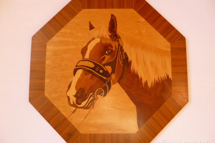 Intarsienbild, Pferdekopf, 42.5 x 42.5 cm