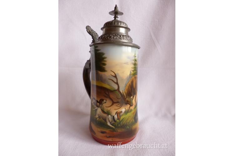 Krug mit Rothirsch und Jagdhunden, 22 cm