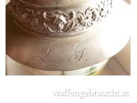 Am Boden Durchscheinbild mit bäuerlichem Tanzpaar, Zinndeckel mit Gravur "L. G."