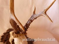 Geweihhöhe 22 cm, auf handgeschnitztem Schild aus Massivholz