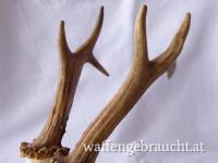 Geweihhöhe 19 cm, auf handgeschnitztem Schild aus Massivholz