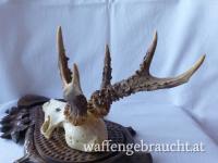 Geweihhöhe 15 cm, auf handgeschnitztem Schild aus Massivholz