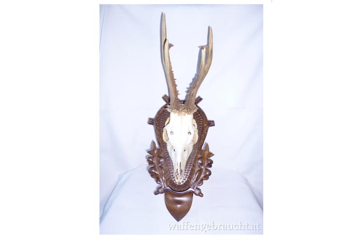 Nr. 6: Rehtrophäe auf handgeschnitztem Schild
