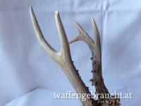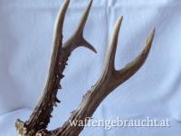 Geweihhöhe 21 cm, auf handgeschnitztem Schild aus Massivholz