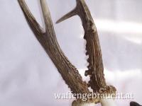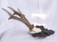 Geweihhöhe 25 cm, montiert auf gebeiztem Holzschild