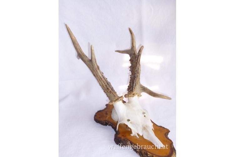 Geweihhöhe 21 cm, montiert auf Holzschild