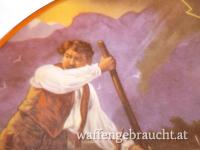 Zierteller, KAHLA GDR, Männer im Boot mit Rothirsch, Durchmesser 19.5 cm, sehr guter Zustand, VB 19,--