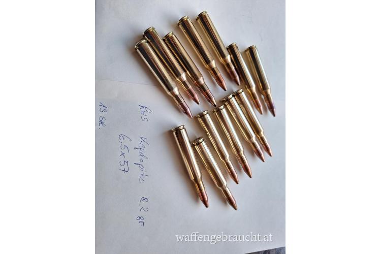 13 Stk. Munition 6,5x57 RWS Kegelspitz 8,2 gr € 39 + dazu passender Ledertasche gesamt Preis € 55