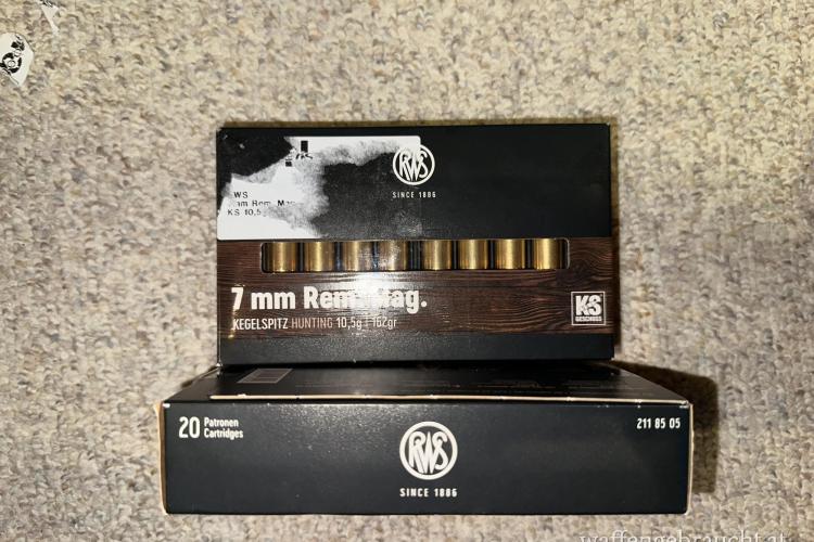 Büchsenpatronen RWS im Kaliber 7 mm Rem. Mag. mit KS Geschoss und einem Geschoss-Gewicht von 10,5g/162gr und 20 Stk pro Packung.