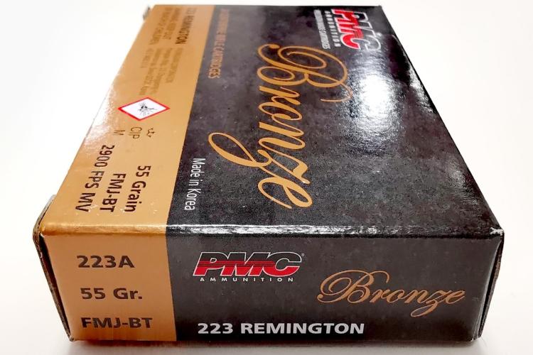 Die hervorragende PMC Bronze Line Sport- und Präzisionsmunition im Kaliber .223 Rem. mit 55 gr FMJ zu einem ausgezeichneten Preis i.H.v. € 13,-- pro Pack (20 Stk.), ab 50 Packs € 448,-- pro 1.000 Stk.