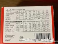Die V0 beträgt 750m/s. Unzählige Stücke Rehwild sind bereits mit dem legendären GECO Teilmantel erlegt worden. Das Geschoss ist universell einsetzbar und fast allen jagdlichen Situationen gewachsen. Es spricht zuverlässig im Wildkörper an und verfügt über eine gute zielballistische Wirkung. Der dünnwandige Geschossmantel ist das Geheimnis dieser erfolgreichen Konstruktion. Die Deformation wird von der ausgeprägten Bleispitze eingeleitet und der Mantel passt sich dem Zielwiderstand an. Auf starkes Wild ist der Deformationsprozess nur begrenzt steuerbar, so dass nicht immer mit einem Ausschuss gerechnet werden kann.