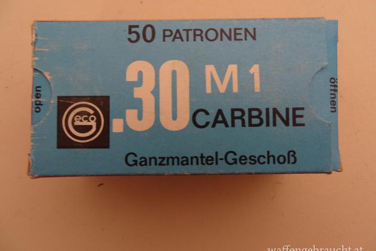 50 Patronen Kal. .30M1 Vollmantel von GECO für den KM1 gefertigt - originale Packung