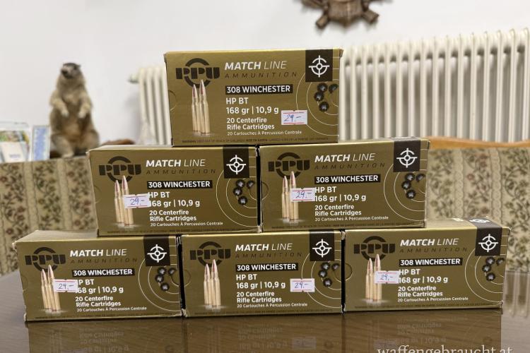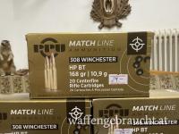 PPU Match Line im Kaliber .308Win HP BT mit 10,9g/168gr