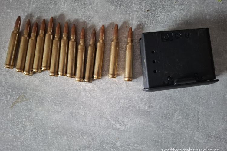 Verkaufe 8 Schuss Magazin für Steyr SBS inkl. 13 Stk. Munition RWS Kegelspitz Kal. .300 Win