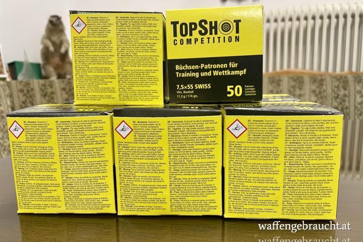 Top Shot im Kaliber 7,5x55 Swiss FMJ Boattail mit 11,3g/174gr
