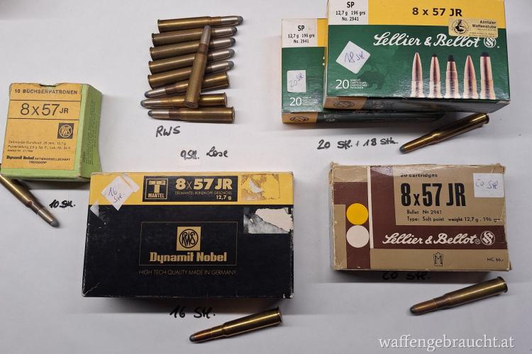 Verkauft Munition 8x57JR diverse Marken siehe Foto 93 Stk. PREIS € 110 gesamt