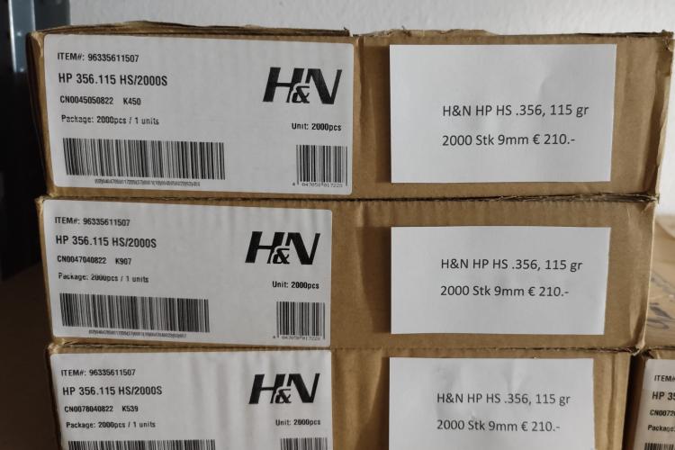 3x HP .356, 115 gr HS je 2000Stk €210.-