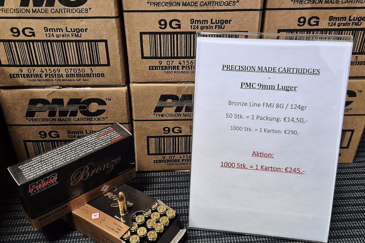💥💥 MUNITIONS-AKTION – PMC 9mm LUGER BRONZE LINE FMJ 124 gr 💥💥