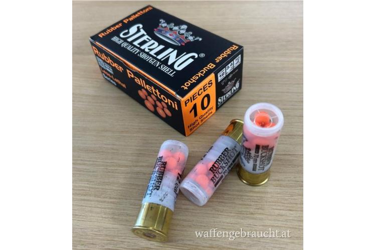 Die Sterling Rubber Buckshot im Kaliber 12/70 ist eine spezialisierte „Less-Lethal“-Munition für den Einsatz in Deeskalationsszenarien und im Objektschutz. Durch die transparente Hülse sind die leuchtend orangefarbenen Gummiposten im Inneren sofort erkennbar, was eine Verwechslung mit scharfer Munition unter Stress nahezu ausschließt.