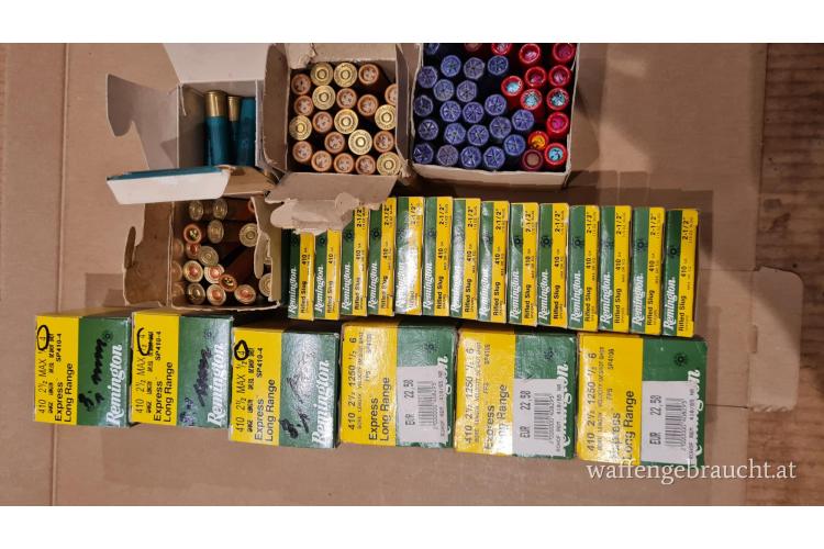 410 Schrot wie abgebildet. Darunter einige ältere seltene. Bekanntlich schwerer zu bekommende Munition