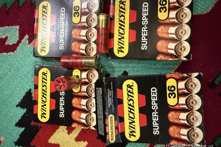 Verkaufe 4 originale Packungen Winchester Super-Speed Schrotpatronen im Kaliber 12/70 (.410). Schrot 3mm