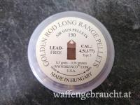 Skenco 4,5 mm Typ 3 Diabolo 0,56 g Type 3 Golden Rod Long Range Pellets mit 10 mm Länge ein Kunststoffdiabolo mit Zinkkern eine wiederverschließbare Kunststoffdose mit 140 Diabolos zu verkaufen.