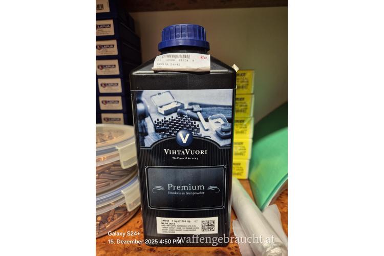 Vihtavuori 24N41 rifle powder is available in 1 kg bottles and in USA in 1lbs bottles and 8 lbs canisters.