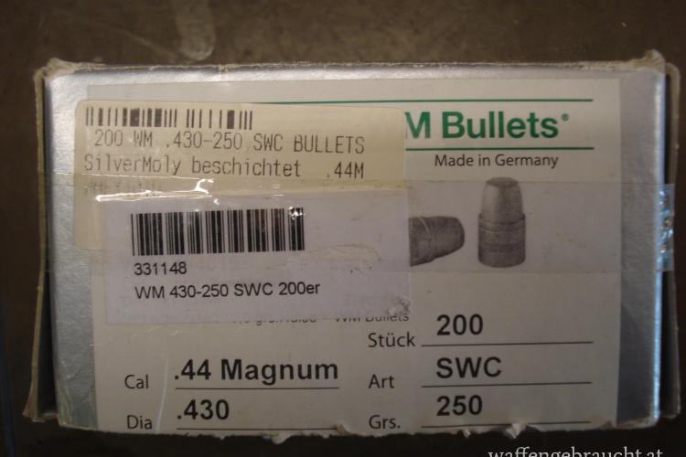 200 Stk. WM-Bullets SWC .430 / 250gr SiverMoly